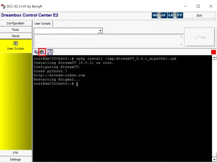 Start by downloading the necessary items. Download the XtreamTV Plugins and DCC_E2 (Dreambox Control Center for Enigma2), extract both of the files and open DCC_E2. After opening the DCC_E2, enter your Enigma 2 IP address and in the login section, you can use the word “Root” for both username and password. Now click on “reconnect“.